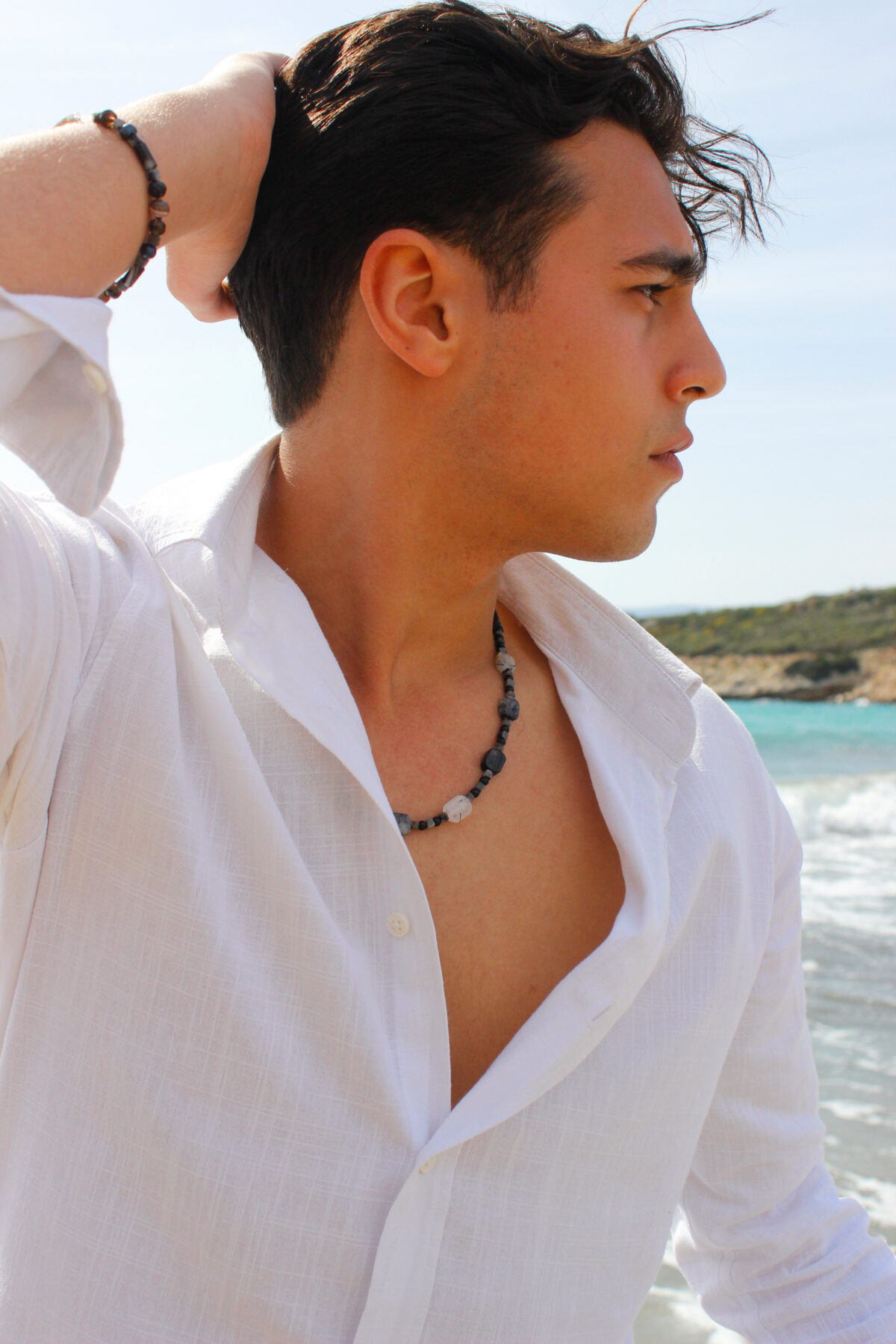 Pierre, turmalin kuvars, obsidyen ve spektrolitin enerjisel gücünü modern bir çizgide buluşturur.